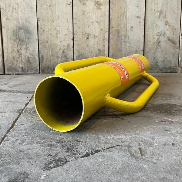 Eenvoudig palen in de grond slaan door middel van het gebruik van deze palenrammer. Door de palenrammer over de paal te schuiven en deze dan op te tillen en te laten vallen, slaat u eenvoudig een paal in de grond. De valbeweging van de palenrammer zorgt ervoor dat de paal makkelijk de gewenste diepte bereikt. Ideaal voor het zetten van schuitingpalen of palen voor een hekwerk.