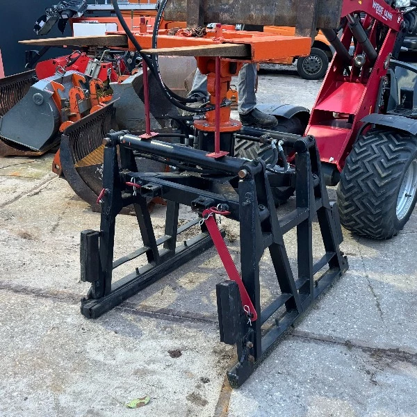 Stenenklem mini/midi wiellader is een makkelijk uitrustingsstuk voor bij het aanleggen van straten. Met de stenenklem pakt u een pak stenen makkelijk op om deze naar de juiste plek te verplaatsen. De stenenklem kan direct aan de machine gehangen worden of aan de palletvorkenset van de wiellader.