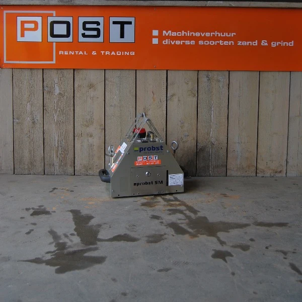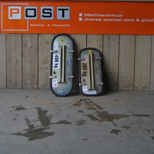 Vacuumunit accu van Probst SM 600 voor het liften van zware voorwerpen tot 400 kg. De voorwerpen dienen een gladde, vlakke en niet poreuse oppervlakte te hebben. De vacuumunit kan aan de machine worden bevestigd door middel van een hijsband die bij de machine geleverd kan worden door ons met een hijskracht van 3.000 kg. De machine kan gehuurd worden met 2 verschillende zuignappen, 1 tot 200 kg en 1 tot 400 kg.