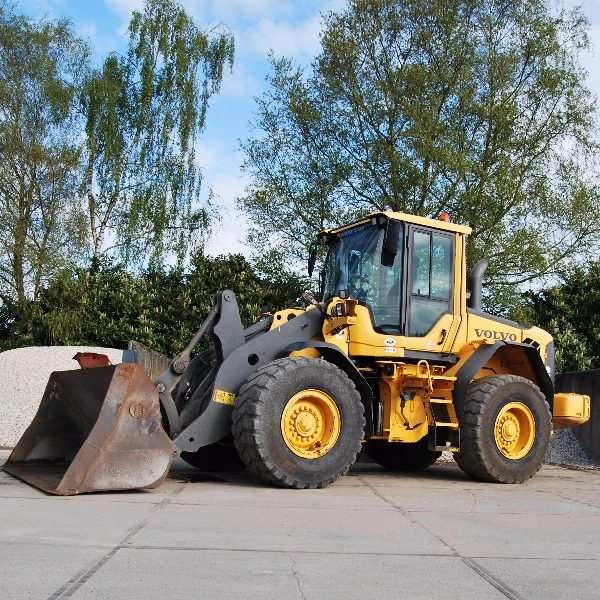 Wiellader Volvo L70H van 13 ton, standaard geleverd met dichte bak, puinriek en palletvorken. Maximum palletvorkenlast 4900 kg. DE wiellader kan tegen meerprijs geleverd worden met een Loadrite weegsysteem met printer. Hiermee kunt u nauwkeurig vrachtwagens laden.